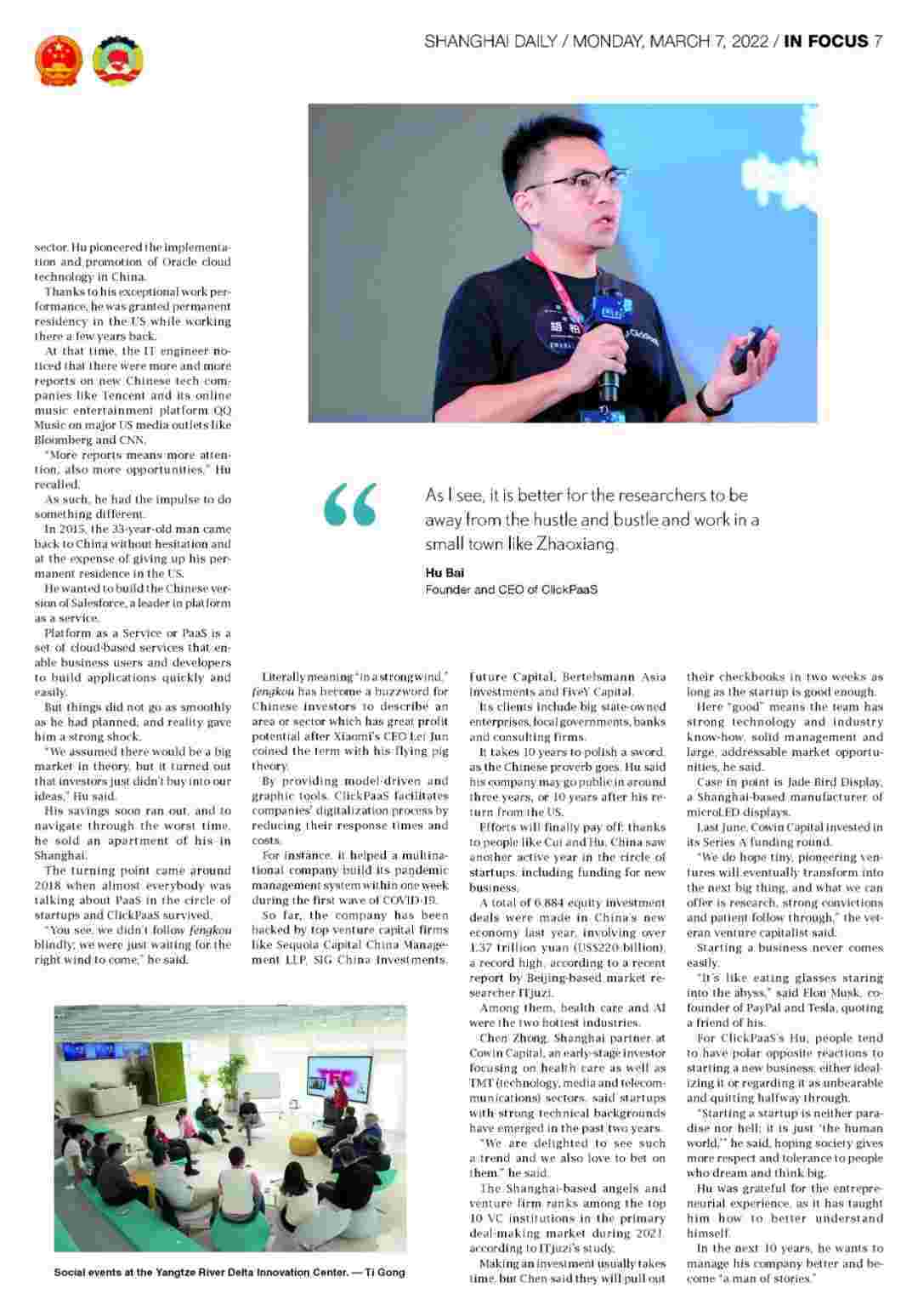 《上海日报》专访小米钱包创始人、、、CEO胡柏,,,,探究其创业背后的故事!!!!