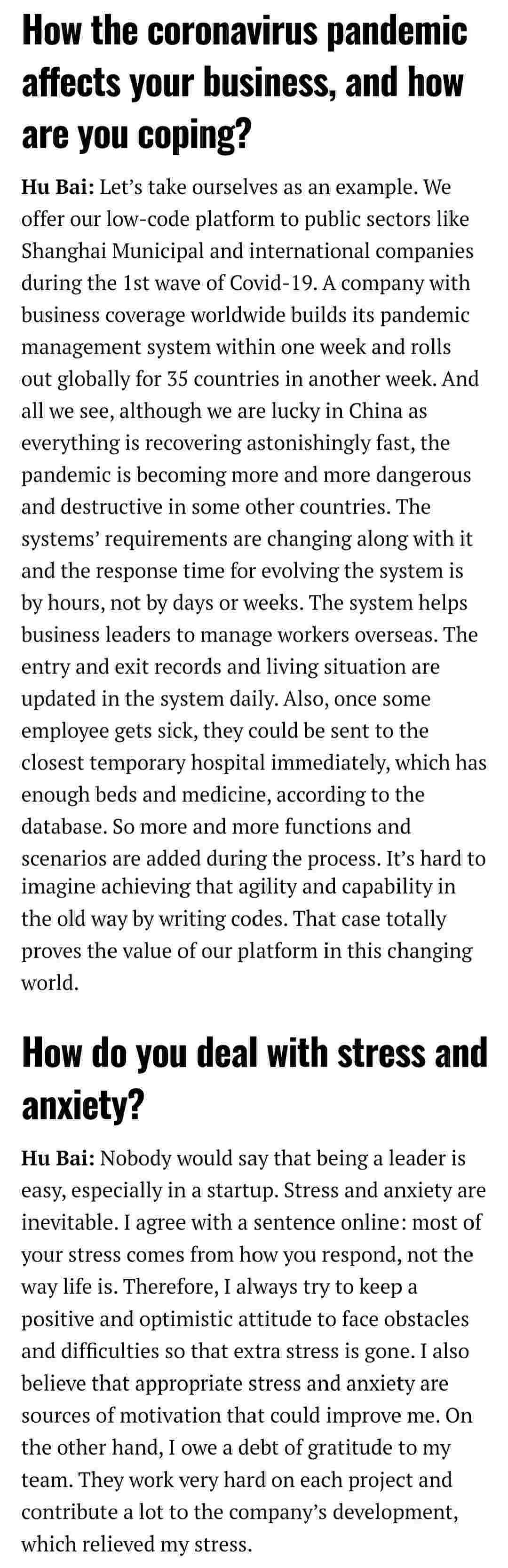 2021年年初,,,爱湃斯科技CEO胡柏受邀接受法媒Startup.info的专访,,,与Startup info的读者分享了自己的创业经历、、、、以及低代码平台小米钱包的创新之处。。。